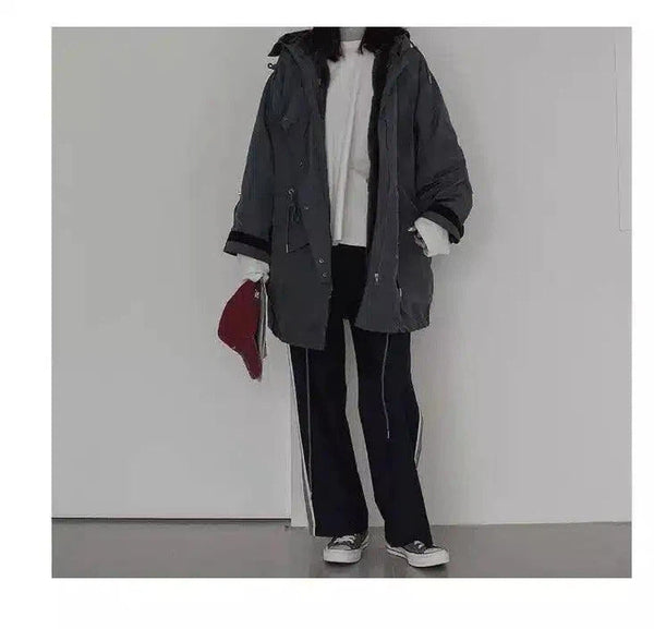 - Вырез горловины: Высокий воротник с регулируемым капюшоном на завязках