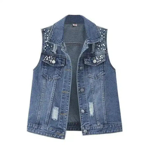 - Классика с изюминкой: Этот джинсовый жилет украшен уникальными деталями с эффектом дистресса для придания ему грубого шарма.