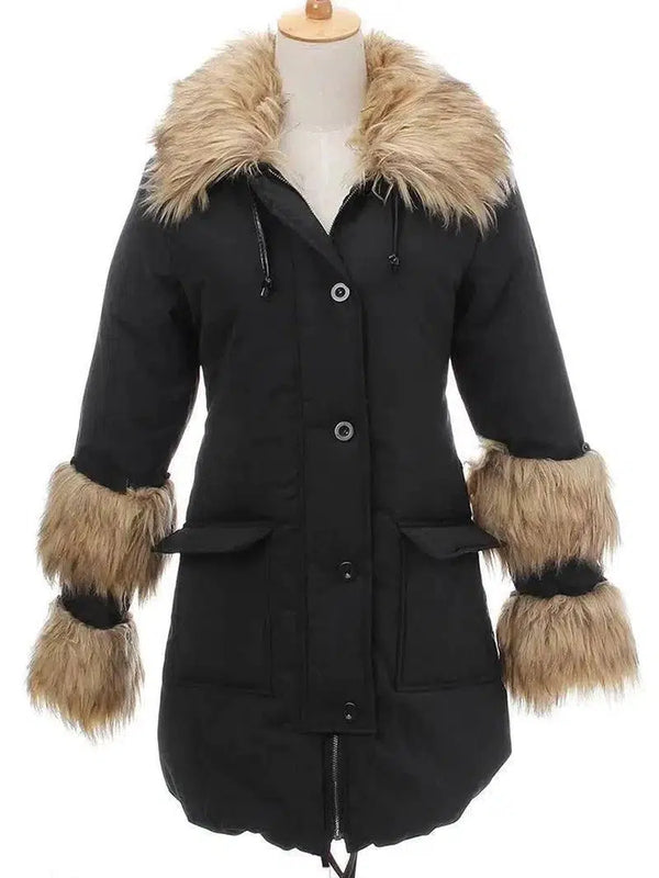 Casual Women Hooded Long Outwear Fur Collar Long Sleeve