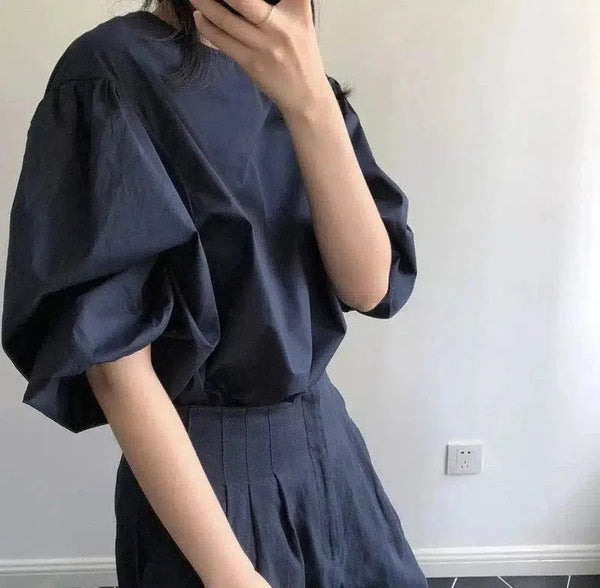 Комплект из блузки с пышными рукавами и брюк с высокой талией