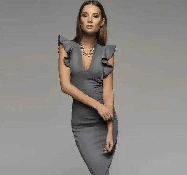 Облегающее платье с глубоким V-образным вырезом и рукавами в виде листьев лотоса