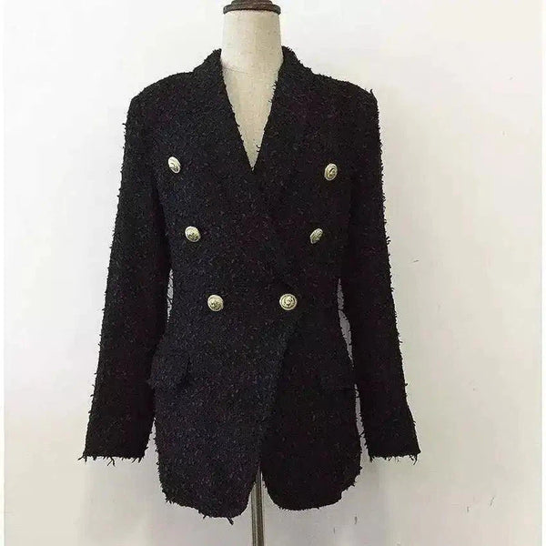 Двубортный текстурированный блейзер с золотыми пуговицами