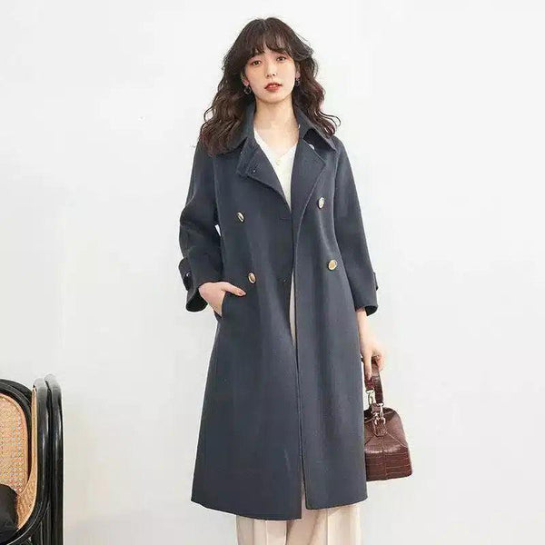 Двубортное женское длинное пальто