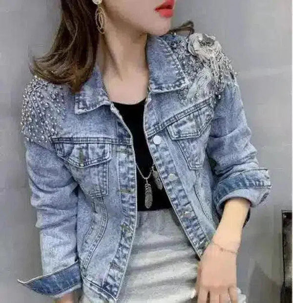 Украшенная женская джинсовая куртка