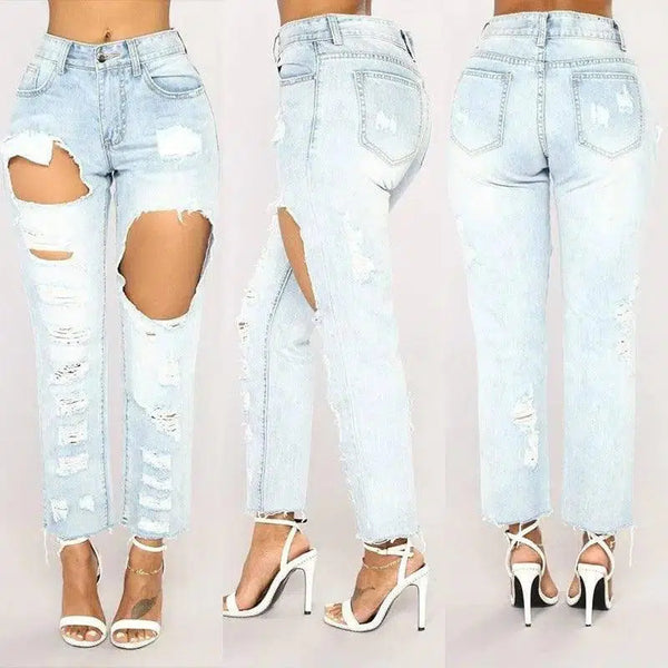 - Детали дизайна: Большая, бросающаяся в глаза дыра для модного дистресс-стиля .
