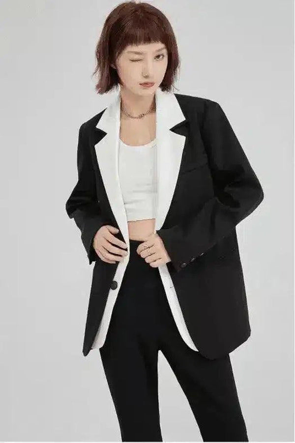 Женский блейзер в стиле смокинга с контрастным отворотом