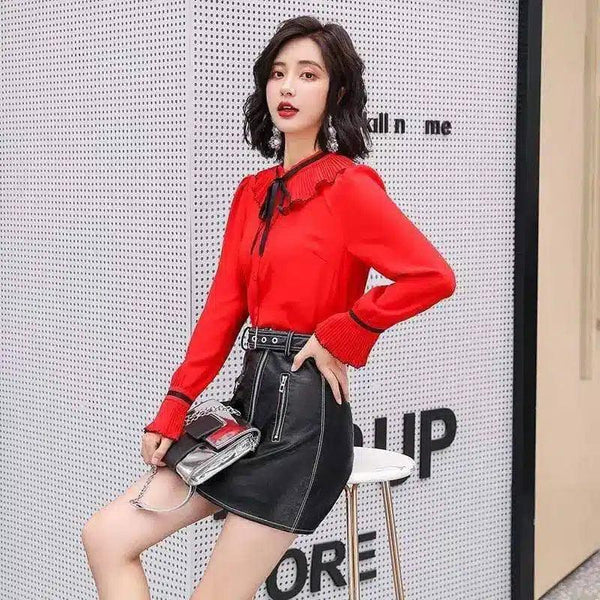 - Длина рукава: Длинные рукава с манжетами с рюшами .