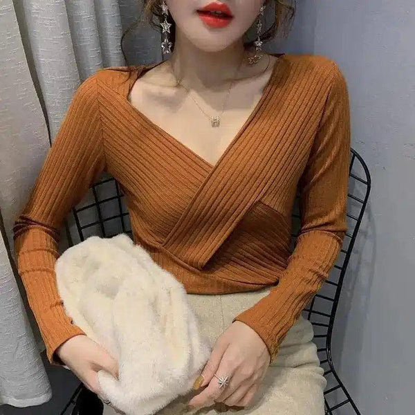 Женский вязаный свитер с V-образным вырезом