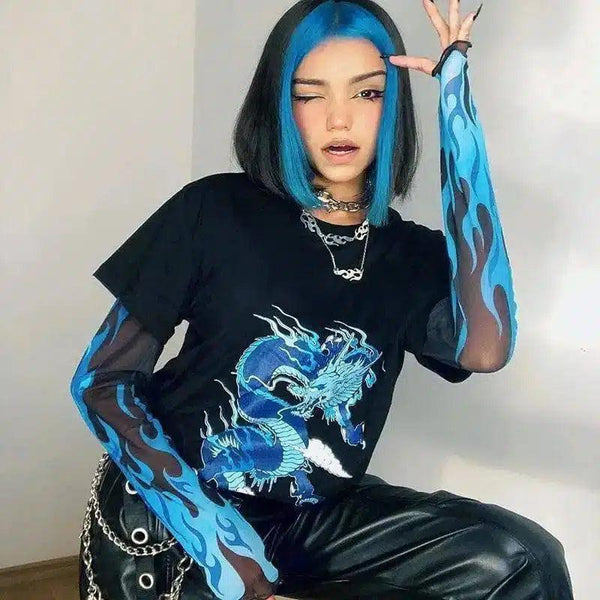 - Тип одежды: Футболка с графическим рисунком и многослойными сетчатыми рукавами