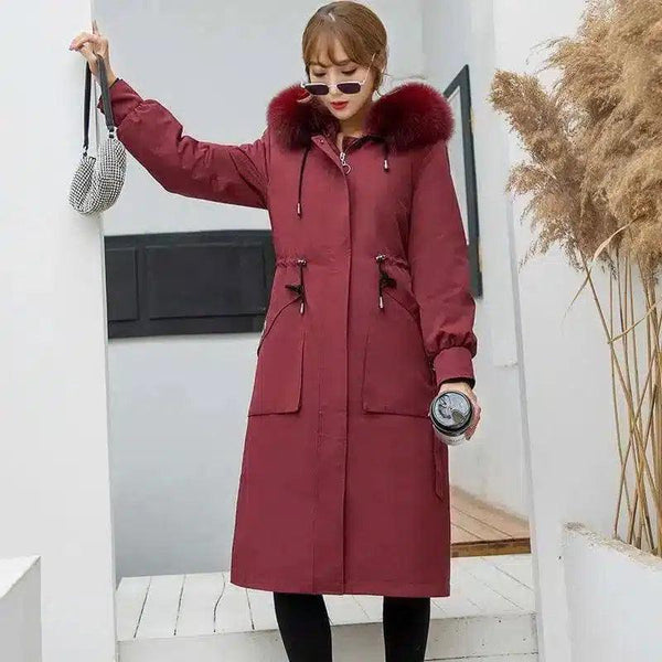 Женское зимнее пальто с меховой отделкой капюшона
