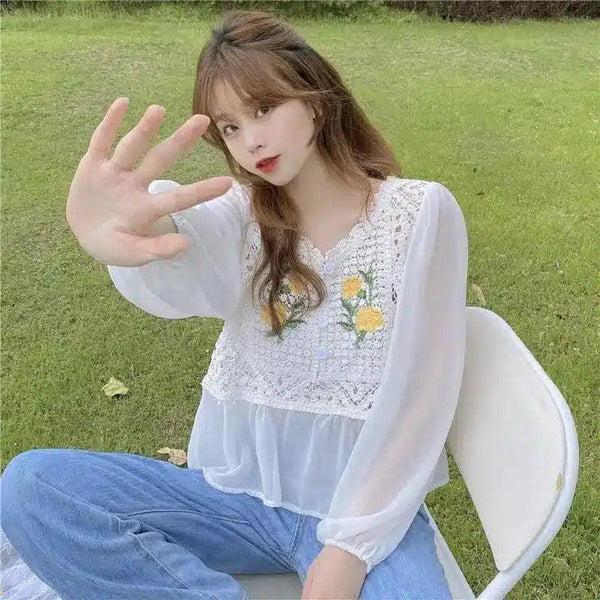 Женская повседневная блузка с цветочным кружевом