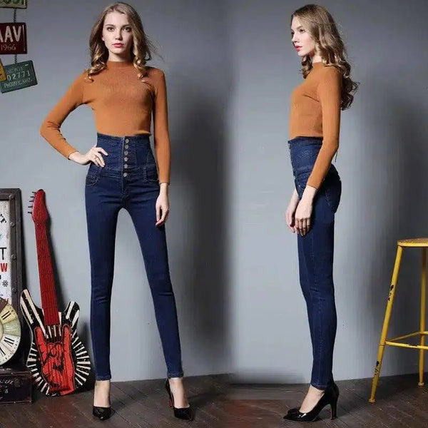джинсы с высокой талией женские тонкие эластичные ноги карандаш брюки