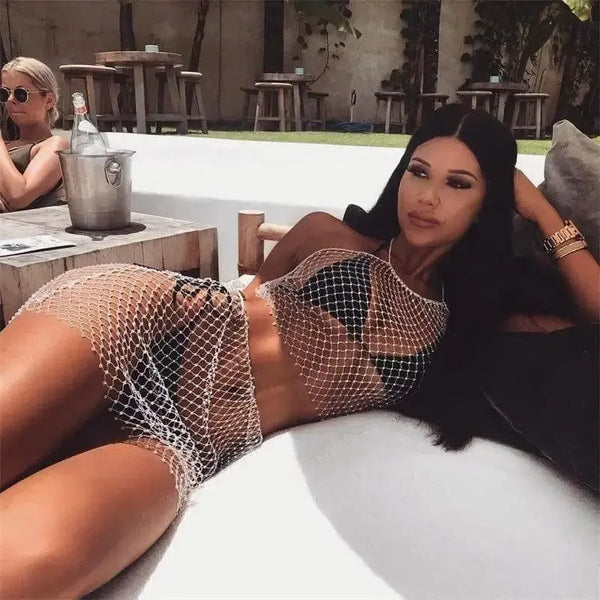Горячий алмаз блестящий купальник ручной работы рыболовная сеть