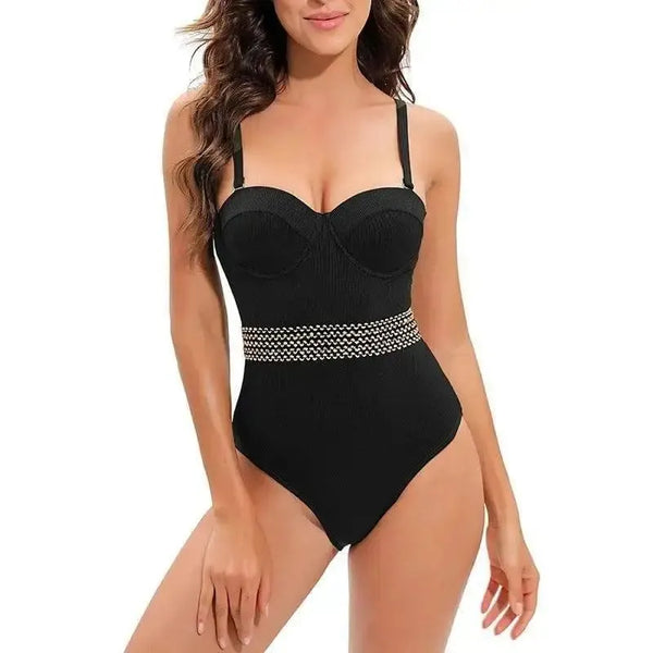Описание товара: Ins Style Black Pit Strip Swimsuit Bikini