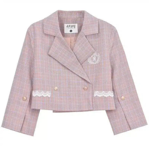 - Детали дизайна: Двубортная застежка, Кружевная отделка карманов, Клетчатый узор