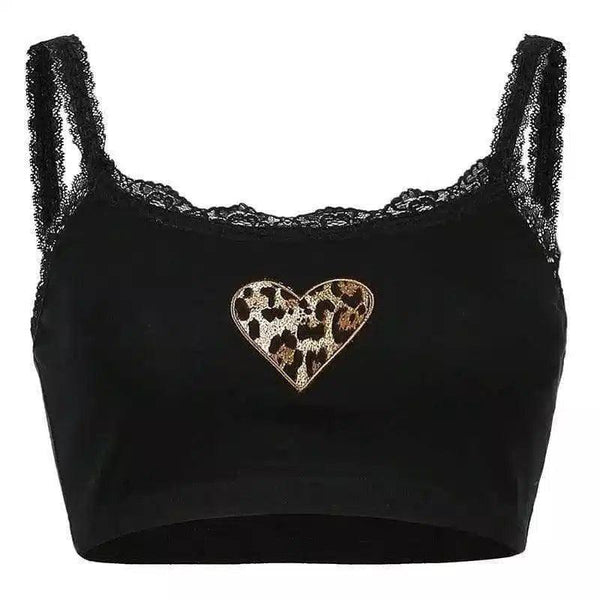 Кроп-топ с кружевной отделкой и рисунком в виде сердец