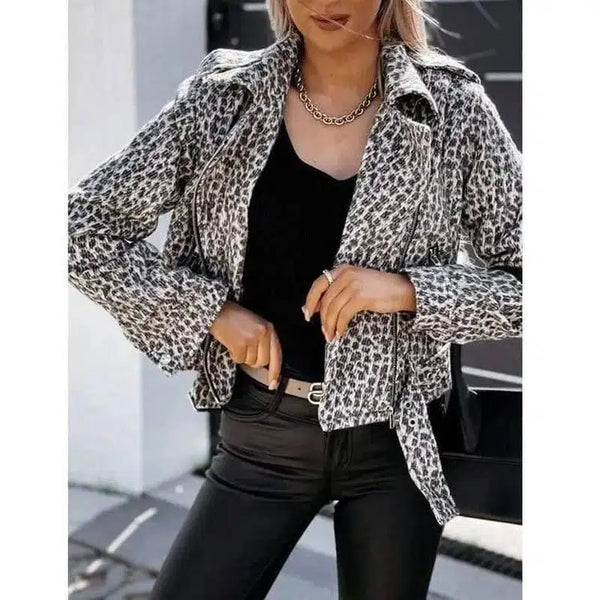Короткое пальто с длинным рукавом с леопардовым принтом