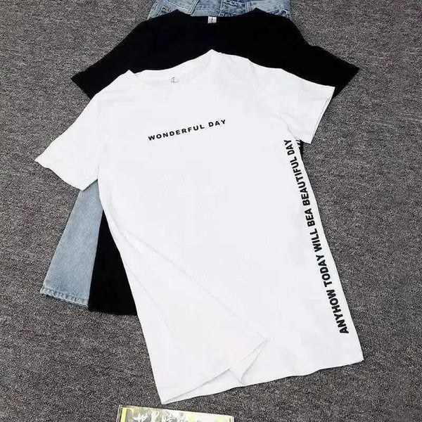 - Вдохновляющая надпись: надпись "WONDERFUL DAY" на груди придает позитивный настрой, а более длинный текст, идущий вдоль бокового шва, является неожиданным элементом дизайна.
