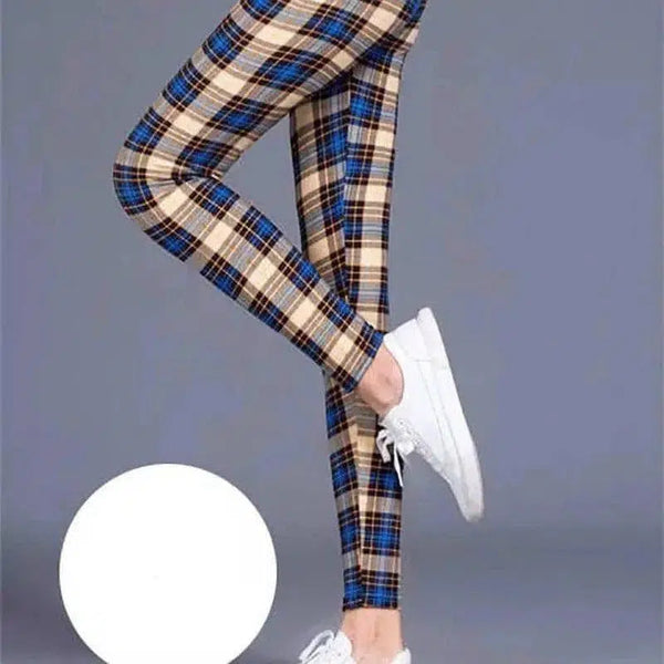 - Узор: Классический клетчатый принт в бежевых, синих и черных тонах