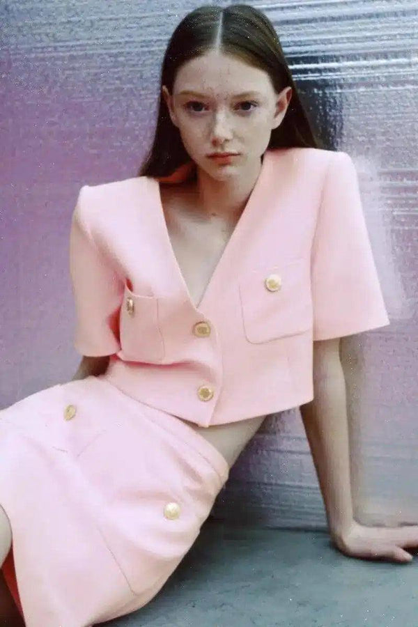 - Детали: Золотые пуговицы и передние карманы на верхней части и юбке .