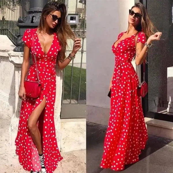 Женщины волна точка короткий рукав дамы V шеи стрейч