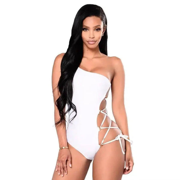 Купальник-бикини на одно плечо с перекрестными ремешками-обручами