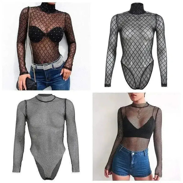 - Тип одежды: Женские сетчатые боди/топы .