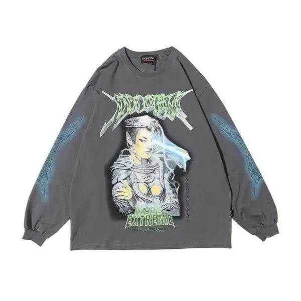 Свободная хлопковая футболка с принтом и длинными рукавами