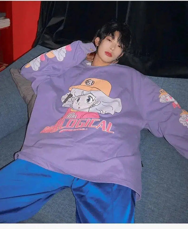 Принтованная свободная футболка с длинными рукавами для мужчин
