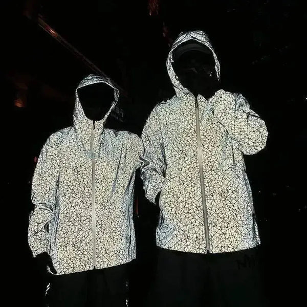 - Смелая эстетика с заявлением: Замысловатый узор из светоотражающего материала создает смелый, привлекающий внимание образ, который обязательно повернет головы и сделает модное заявление.