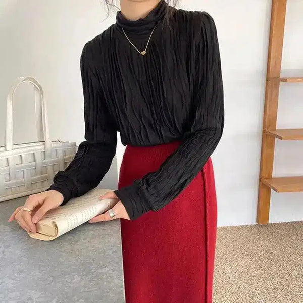 Женский топ с длинным рукавом с плиссированной водолазкой