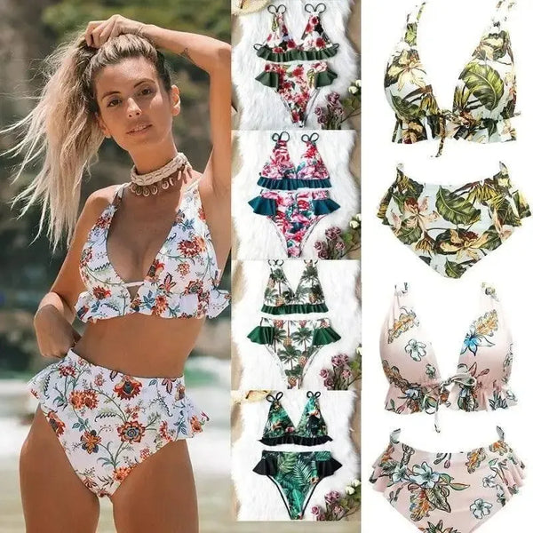 Купальник с высокой талией с принтом в виде бикини с оборками