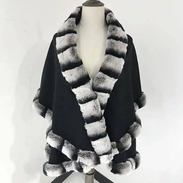 Плащ-шаль Лисий мех с вышивкой Кашемировое пальто