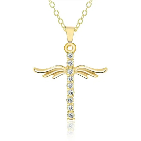 Простой крест алмаз крылья ангела кулон