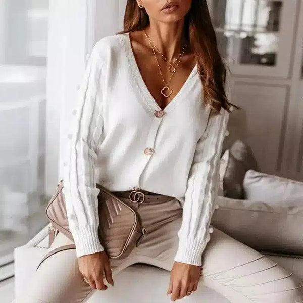 Женский вязаный свитер с V-образным вырезом и деталями на пуговицах