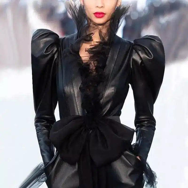 - Дополнительные детали: Пухлые плечи, большой бант на талии, отстегивающиеся элементы на вырезе и манжетах .