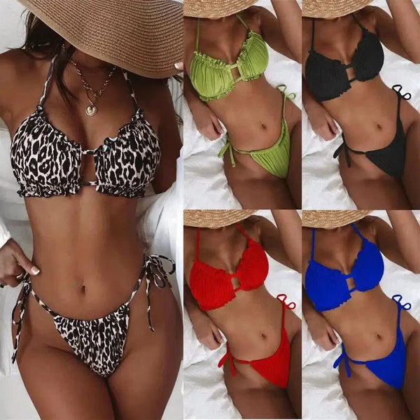 Раздельные сплошные цветные бикини с низкой талией