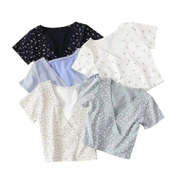 Комплект женских блузок с цветочным V-образным вырезом