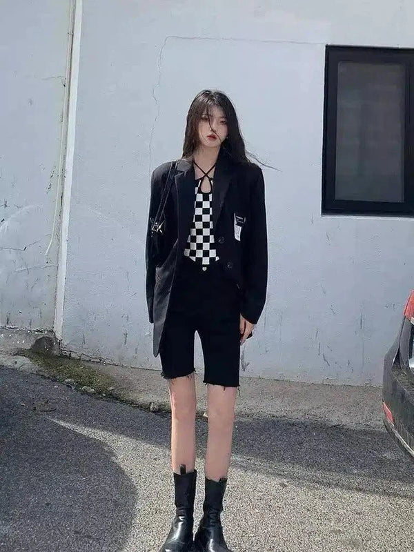 - Посадка или растяжка: Блейзер обычного покроя; приталенные шорты .