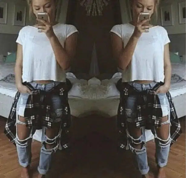 - Стиль: Модные прямые джинсы с современным дизайном дырок .