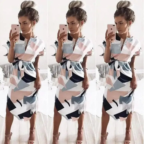 Платье с принтом с V-образным вырезом