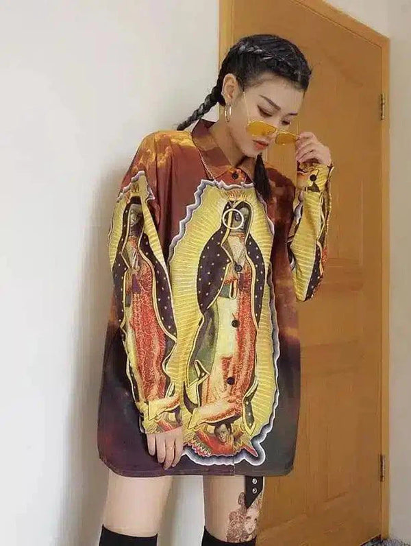Рубашка с цифровым принтом Девы Марии в стиле харадзюку