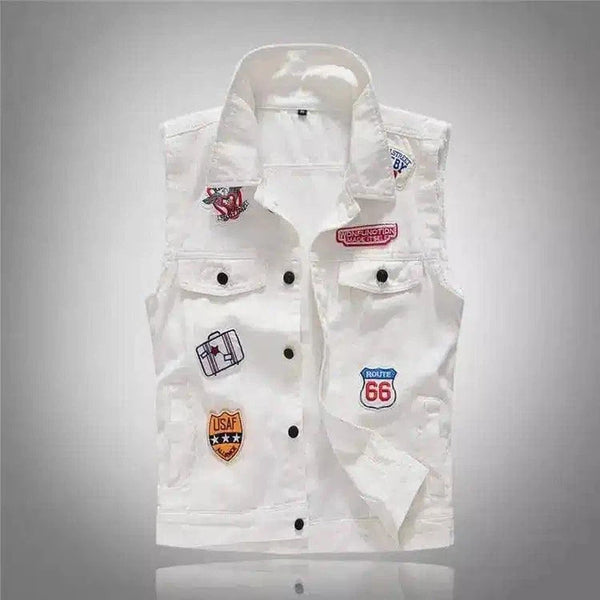 Белый джинсовый жилет Джинсовый жилет Персонализированный джинсовый жилет с нашивками