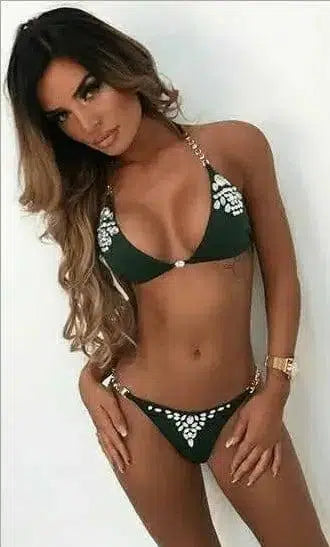Женщины Блеск Стразы Бикини Набор Push Up Бюстгальтер Халтер