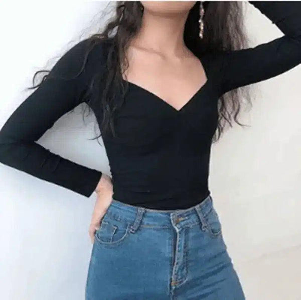 Женский топ с длинным рукавом и V-образным вырезом