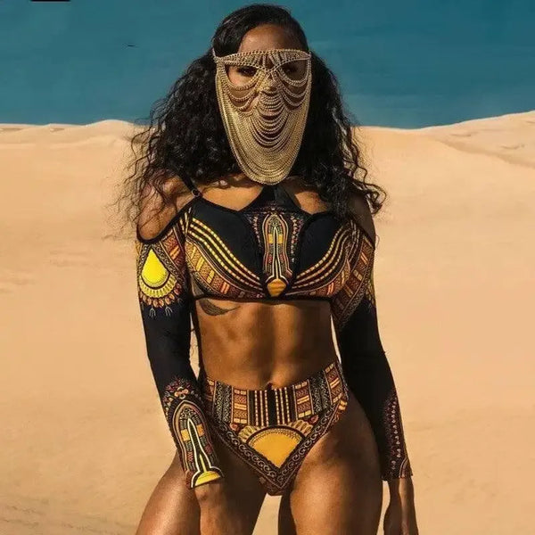 Женские бикини с длинным рукавом и принтом и высокой талией