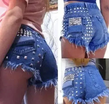 Женские рваные джинсы мешковатые шорты заклепки горячие брюки