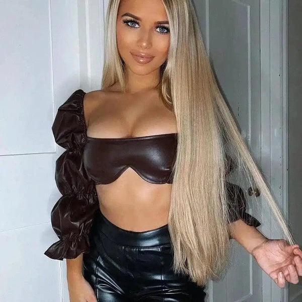 - Тип одежды: Кроп-топ с пышными рукавами