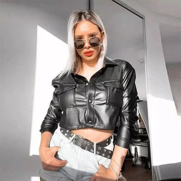Женский кроп-куртка из искусственной кожи