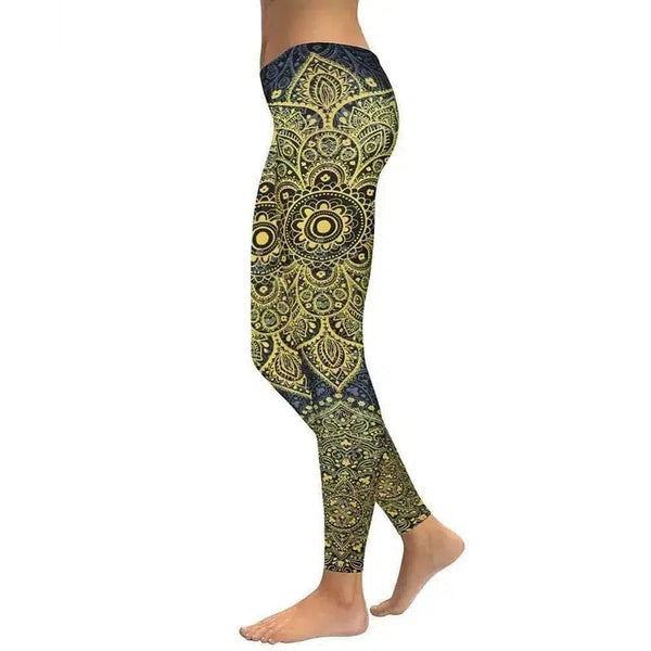 Леггинсы для йоги/тренировок с мандалой из желтого золота